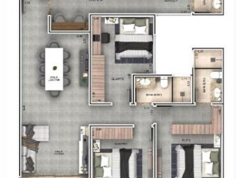 - 03 quartos, sendo 01 suíte